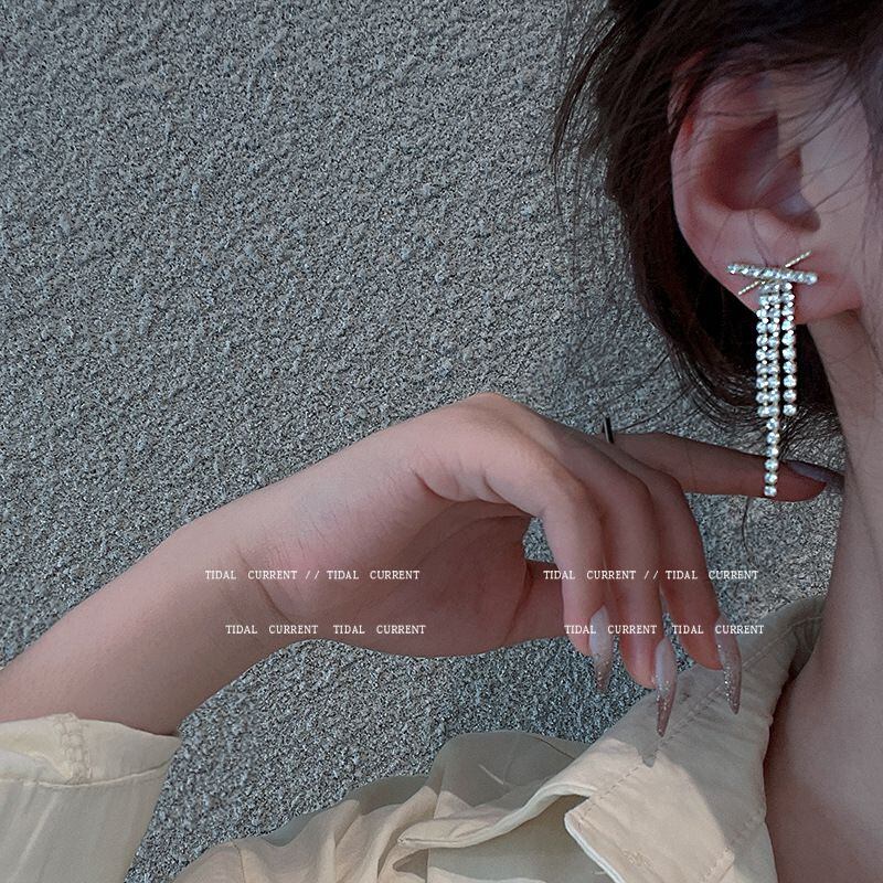 sシルバーニードルロングタッセルイヤリング女性ラウンドフェイススリミングイヤリングライトラグジュアリーイヤリングイヤリングEHEEHE