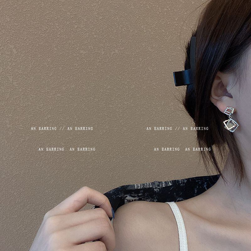 Sシルバーニードルイヤリング女性の幾何学的なダイヤモンドのイヤリングライトラグジュアリースクエアイヤリングEHE
