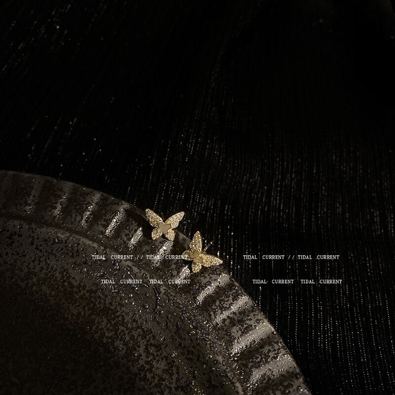 Sシルバーニードルマイクロインレイジルコンバタフライイヤリング、ライトラグジュアリースーパーフェアリーイヤリング、ハイエンドイヤリングEHE