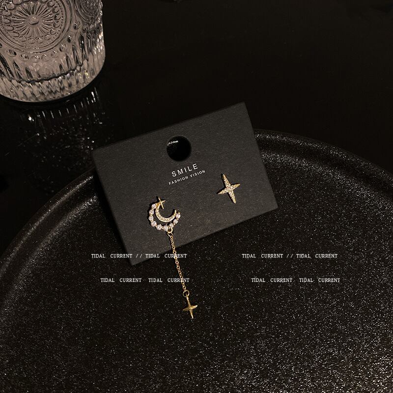 SシルバーターゲットスターとムーンイヤリングロングタッセルイヤリングイヤリングEHE