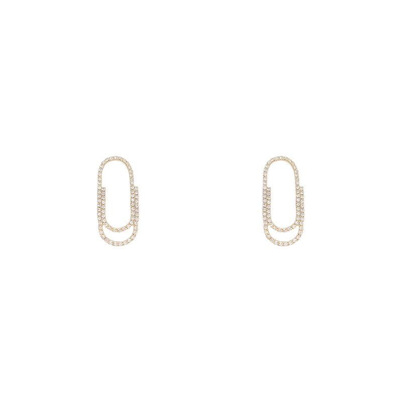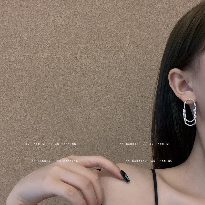 sシルバーニードルフルダイヤモンドペーパークリップイヤリング2022新しいライトラグジュアリーハイエンドイヤリングメスEHE