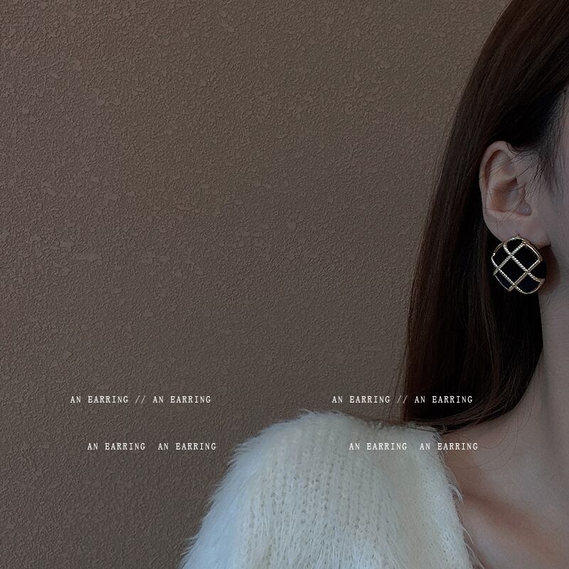 SシルバーニードルスタッドピアスメタルラティスラウンドイヤージュエリーEHE