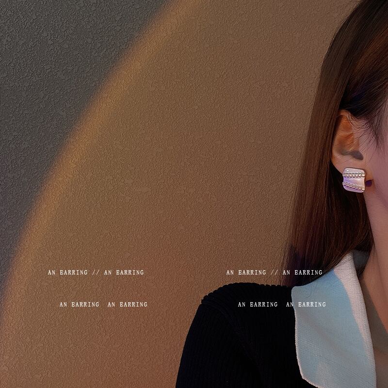 SシルバーニードルイヤリングメタルコールドイヤリングスクエアチェーンイヤリングEHE