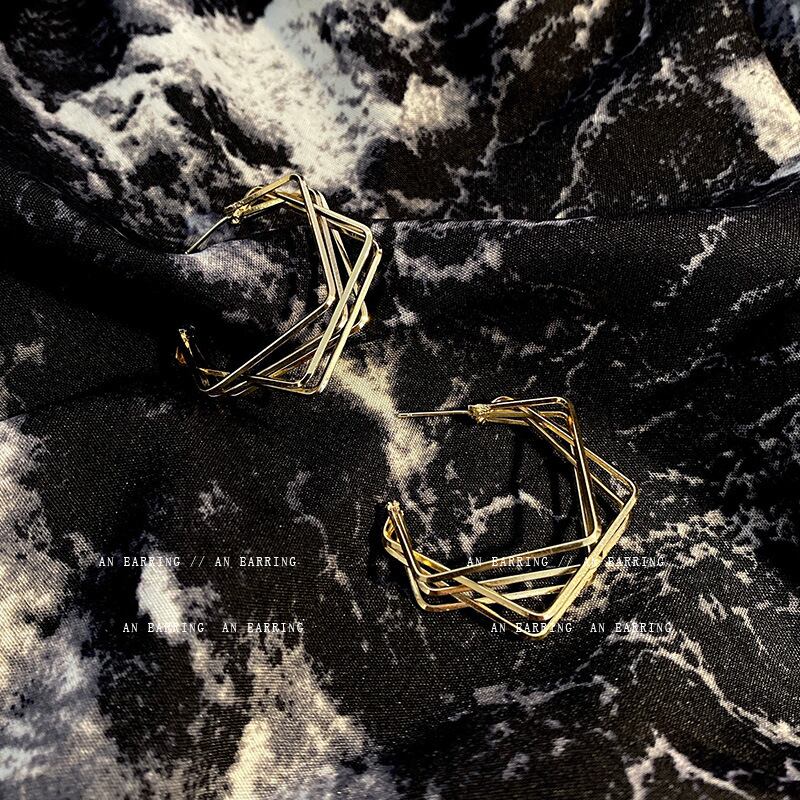 シルバーニードルメタルスタッドピアスメスサークル幾何学デザインイヤリングコールドイヤリングEHE
