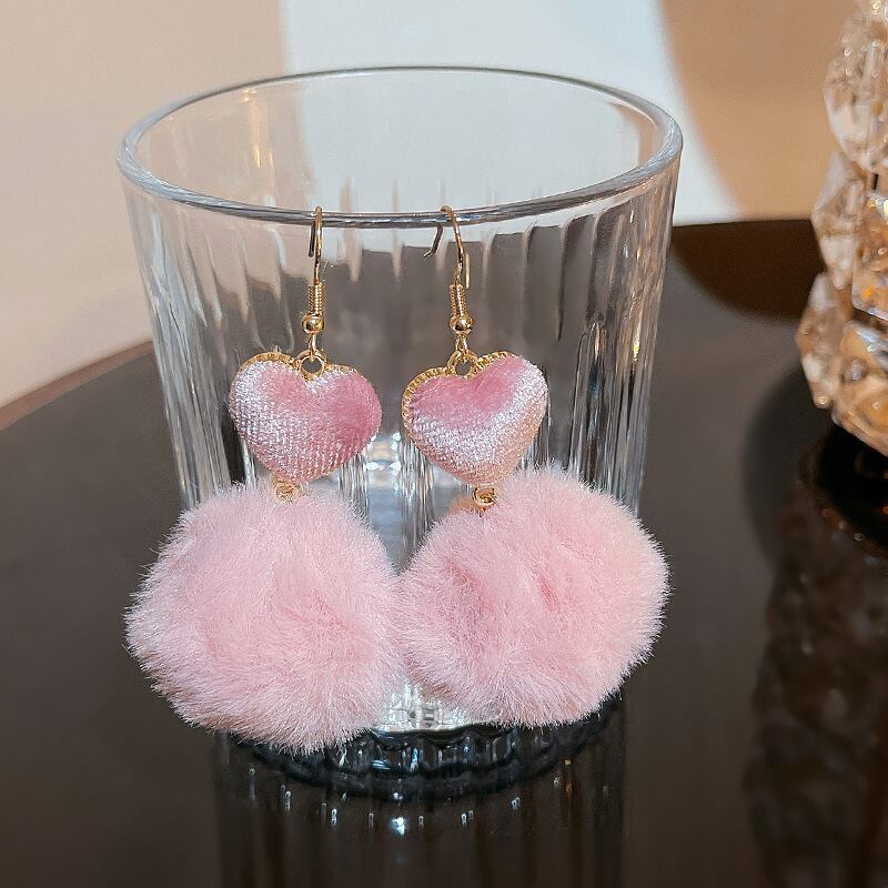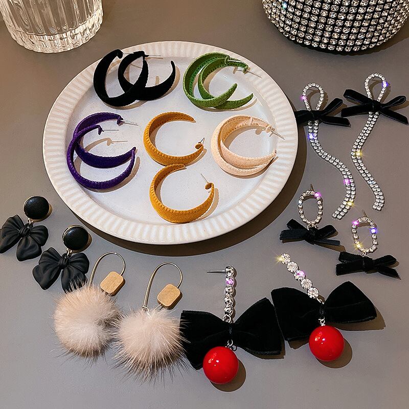 黒秋冬ロングボールピアス蝶結びピアスシルバーニードルイヤージュエリーEHEEHE