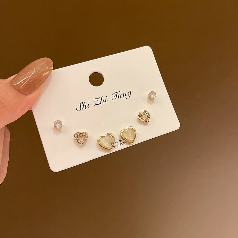 オパールスタッドピアス女性の絶妙なハイエンドセンスピアスライトラグジュアリーイヤリングスリーピースセットEHE