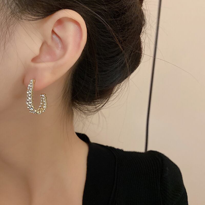 半円形のイヤリング、銀の針、C字型のハイエンドのイヤリング、誇張されたイヤリングEHEEHE
