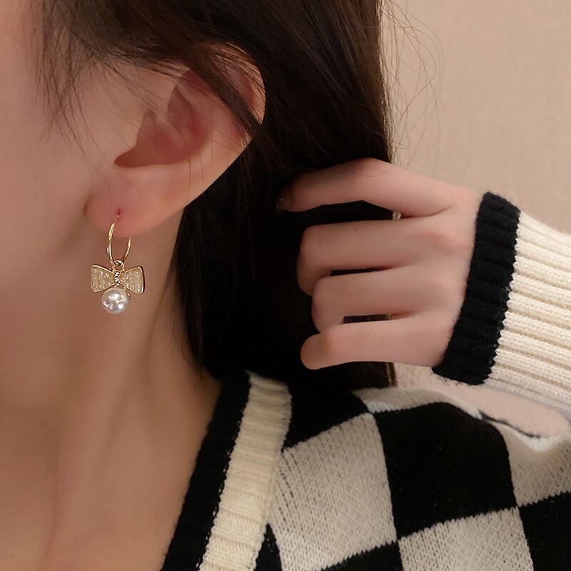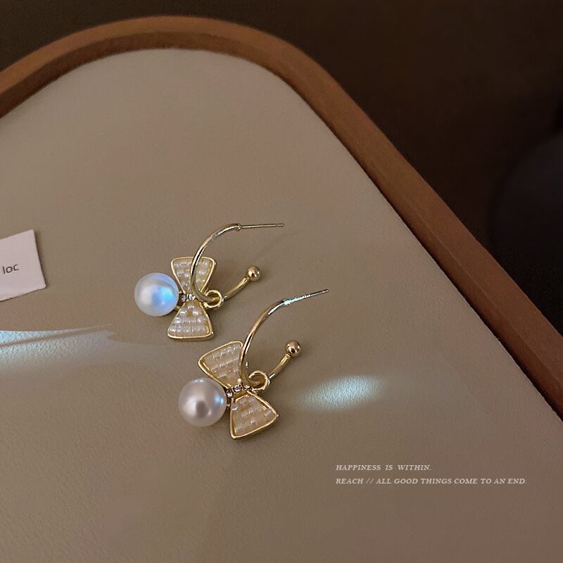 ボウノットパールイヤリングイヤリングハイエンドイヤリングEHE