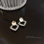 スクエアライトラグジュアリージルコンピアスメスピアスSシルバーニードルピアスEHE
