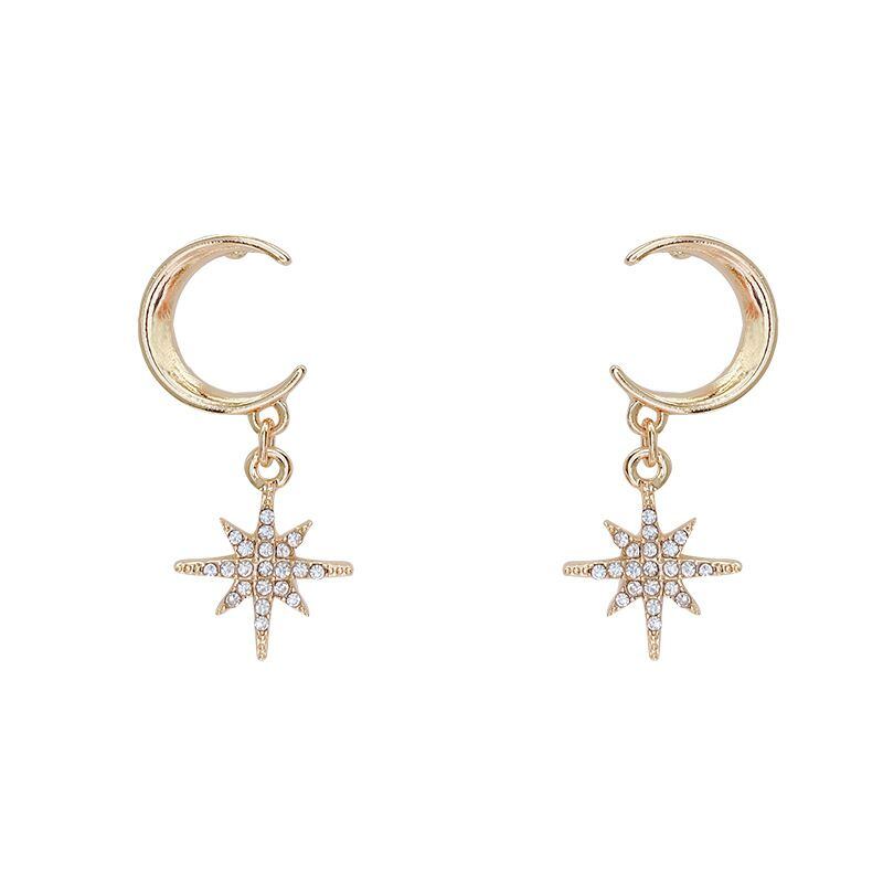 SシルバーニードルムーンピアススターピアスイヤリングEHEEHE