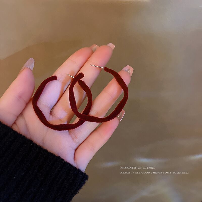 イヤリング女性用シルバーニードル植毛イヤリング高品質の秋冬レッドイヤリングEHE