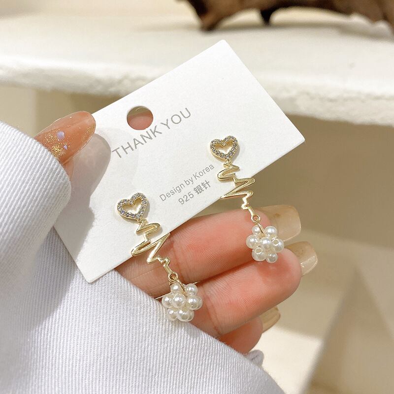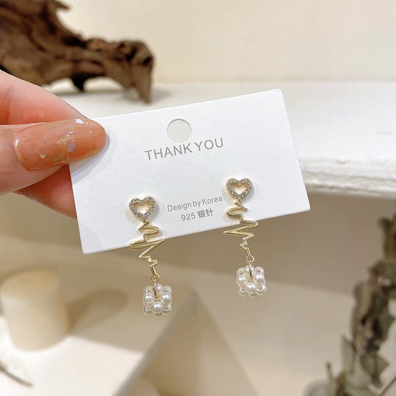 パールイヤリングメスロングECGイヤリングシルバーニードルイヤリングEHE