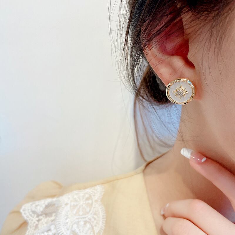 Sシルバーニードル8先の尖った星の象眼細工のジルコンイヤリング女性のイヤリングイヤリングEHE