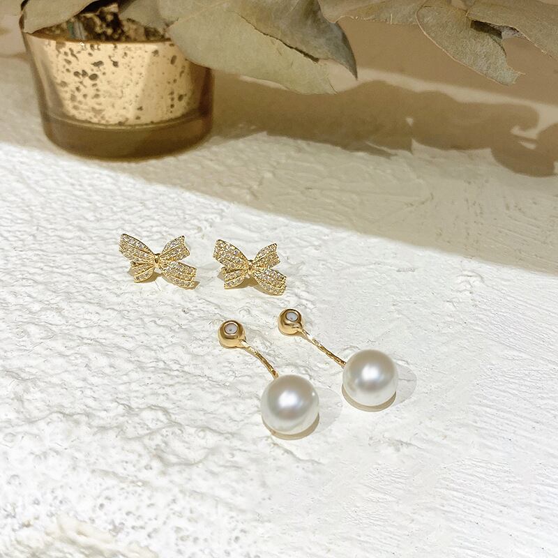 ボウノットパールタッセルイヤリング女性用イヤリングシルバーニードルマイクロインレイドハイエンドイヤージュエリーEHE
