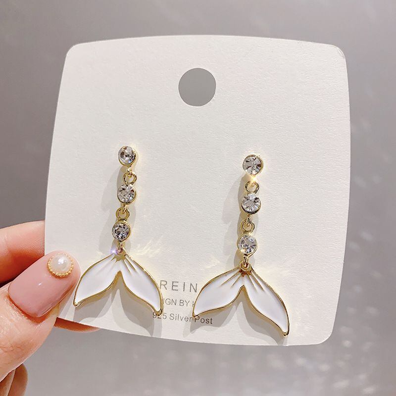 sシルバーニードルハイエンド絶妙なラインストーンピアスロングフィッシュテールピアス2020新しいイヤリングEHEEHE