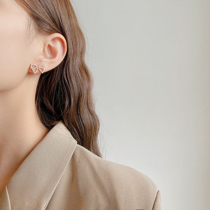 シルバーニードルパールバタフライスタッドピアスメスEHE