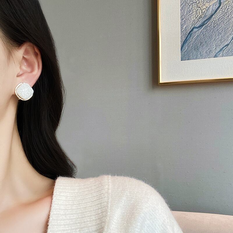イヤリング女性のハイエンドスタッドピアス賢いシルバーニードルスクエアイヤージュエリーEHE