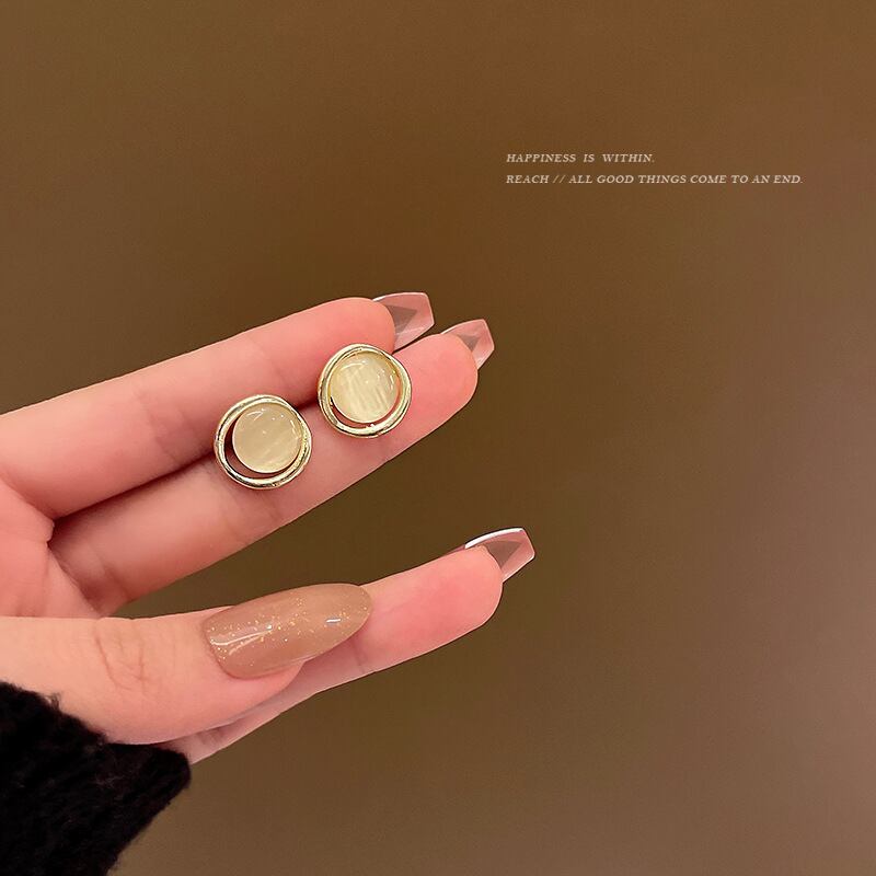 シルバーニードルオパールサークルスタッドピアス女性フロスティニューハイエンドセンセーションイヤージュエリーイヤリングEHE