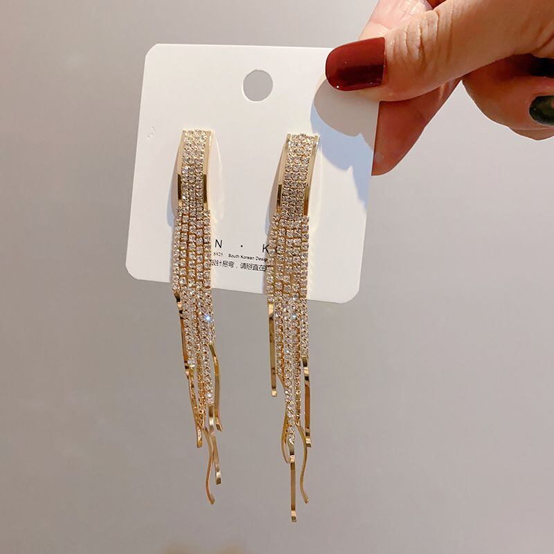 誇張された長いタッセルイヤリング点滅ダイヤモンドイヤリングSシルバーニードルイヤリングメスEHEEHE