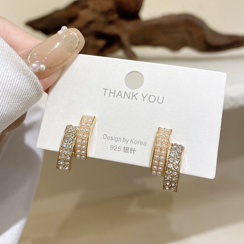 シルバーニードルクレバーパールスタッドピアス女性フロスティハイセンスイヤリングイヤリングEHE