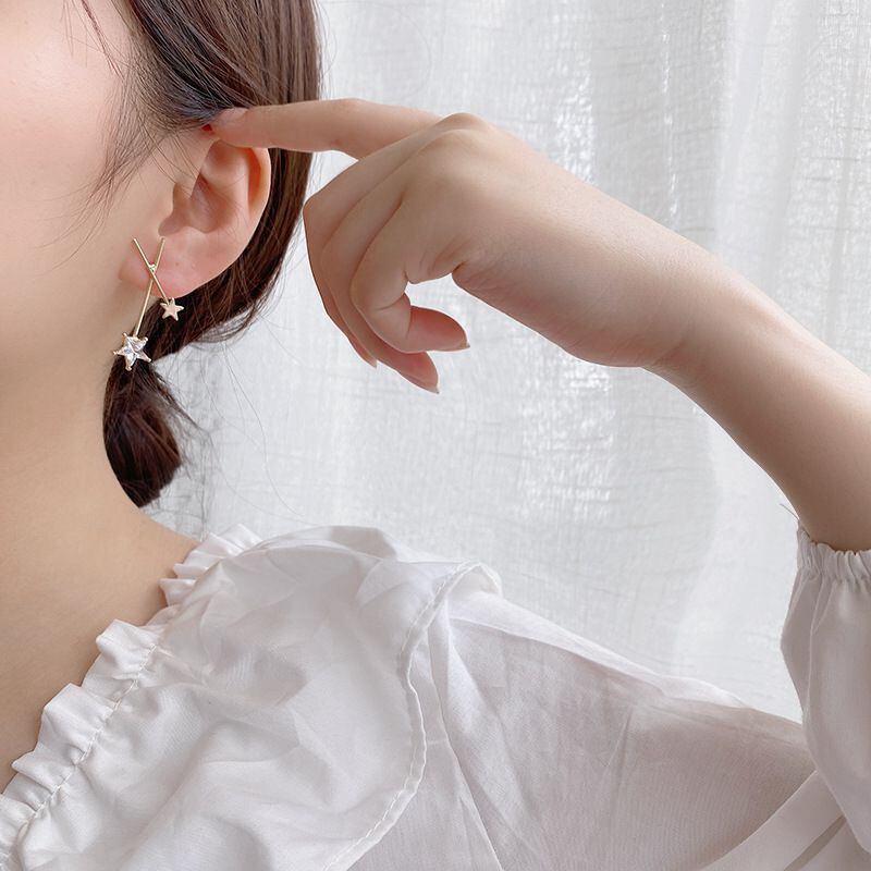 メタルクロス五芒星ピアスメスピアスシルバーニードルピアスEHE