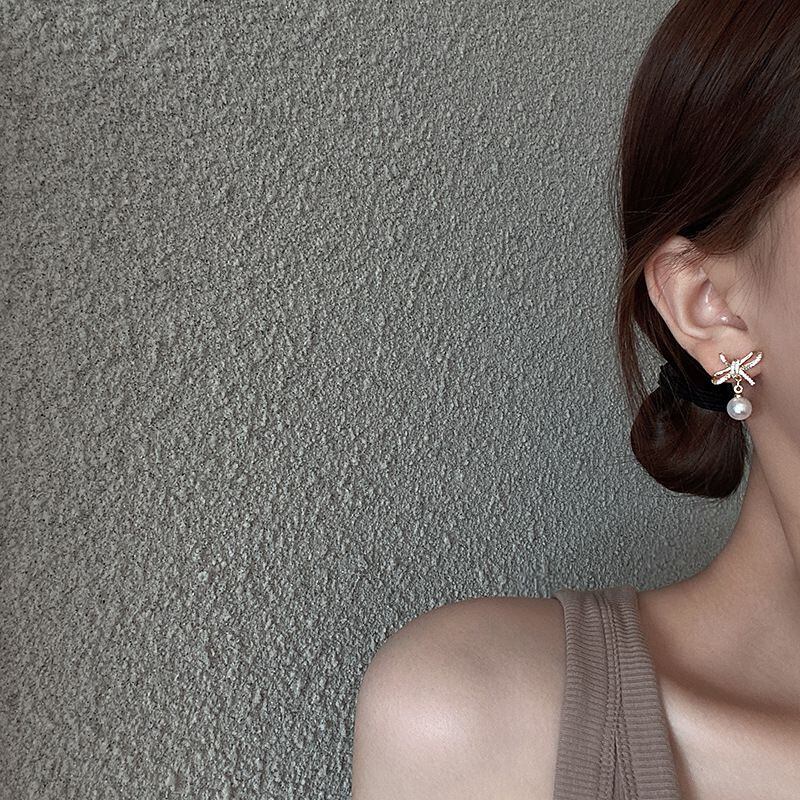 ボウノットパール対称イヤリングウィメンズ2020ニューライトラグジュアリーイヤリングマイクロインレイイヤリングEHEEHE