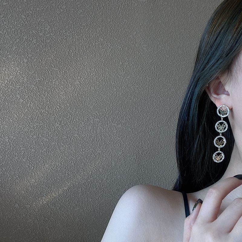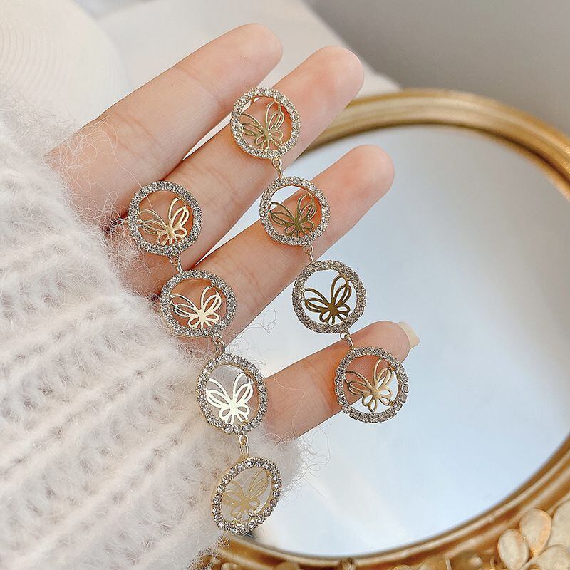 逃げるプリンセスイヤリングロングラインストーンイヤリングシルバーニードルバタフライタッセルイヤージュエリー女性EHEEHE