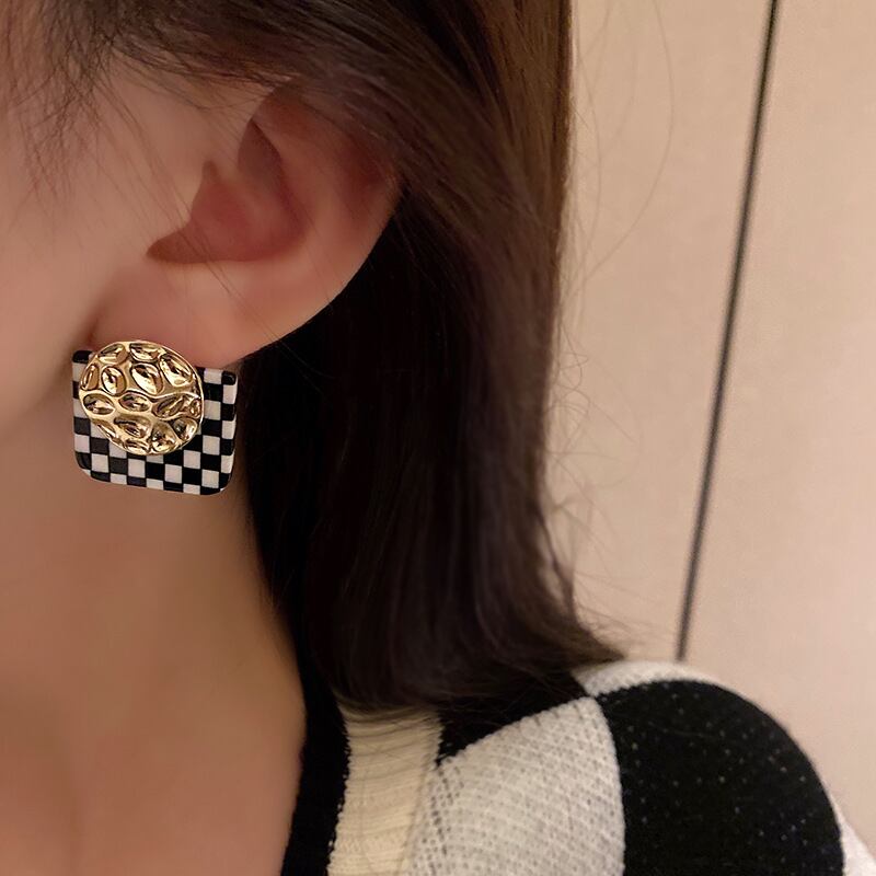黒と白の市松模様の格子ピアス、ハイエンドのイヤリング、女性のイヤリングEHE