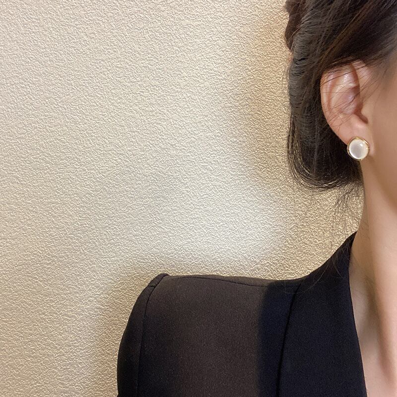 コールドオーバルイヤリングハイエンドイヤリングメスムーンストーンピアスEHE