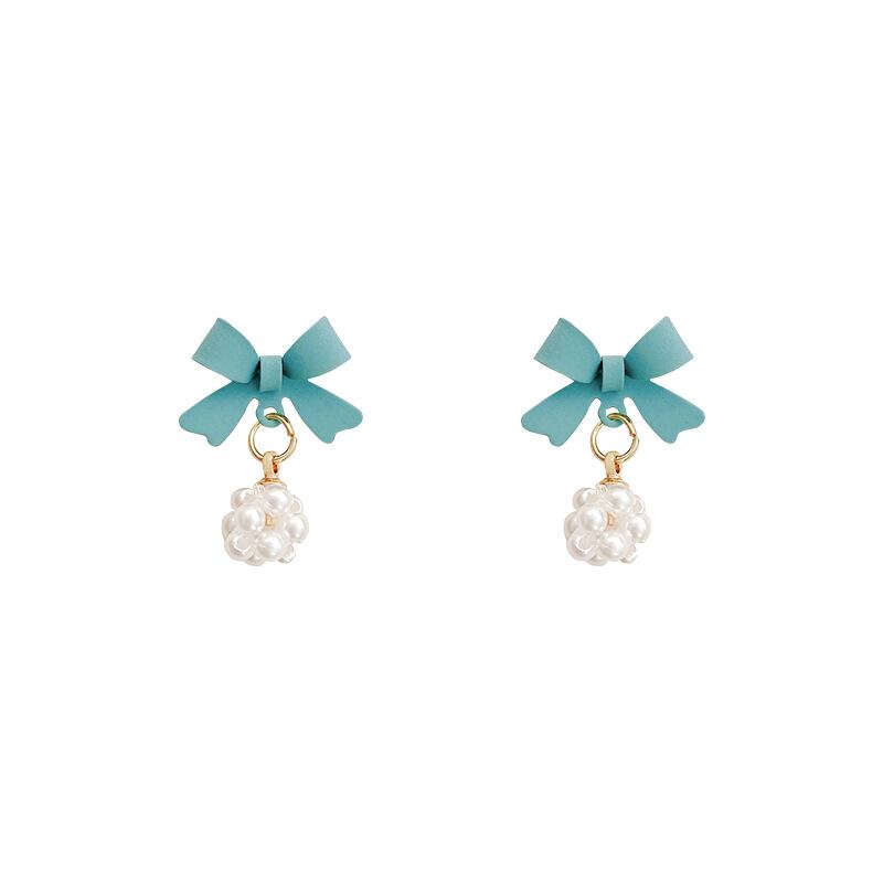Sシルバーニードル賢いパールボウイヤリングイヤリングイヤリングスウィートイヤリングメスEHE