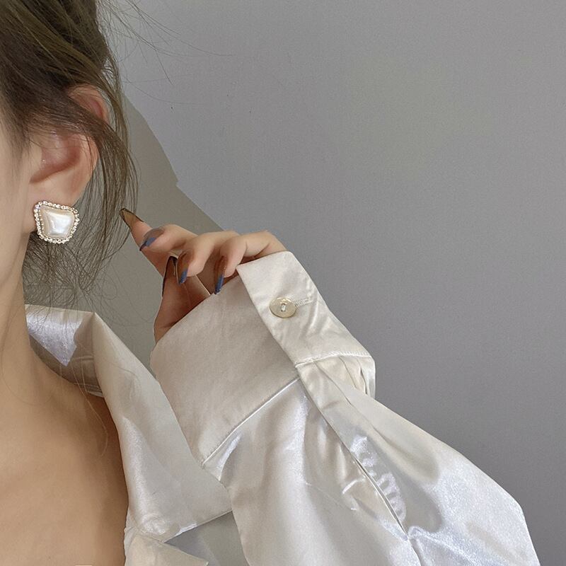 ルールバロックパールピアスシルバーニードルスタッドピアスダイヤモンドイヤリングEHE