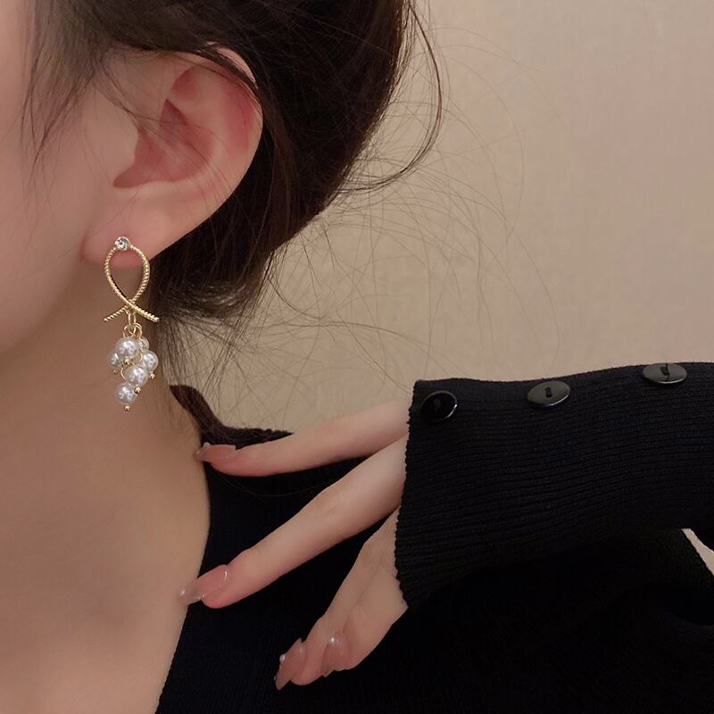 ロングクロスパールピアス、グレープタッセルピアス、ハイエンドピアスメスEHEEHE