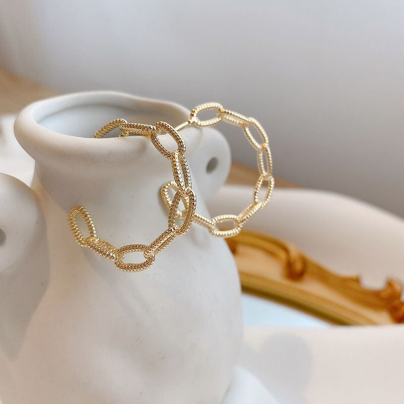 ゴールデンシルバーニードルサークルイヤリングメスイヤリングチェーンC字型イヤリングEHE