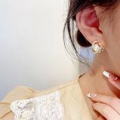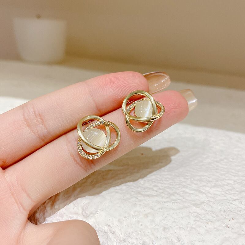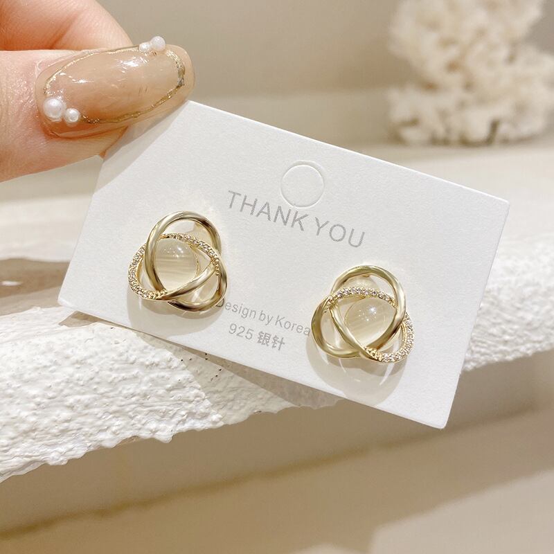 シルバーニードル幾何学的オパールピアス女性ピアスジルコンピアスEHE