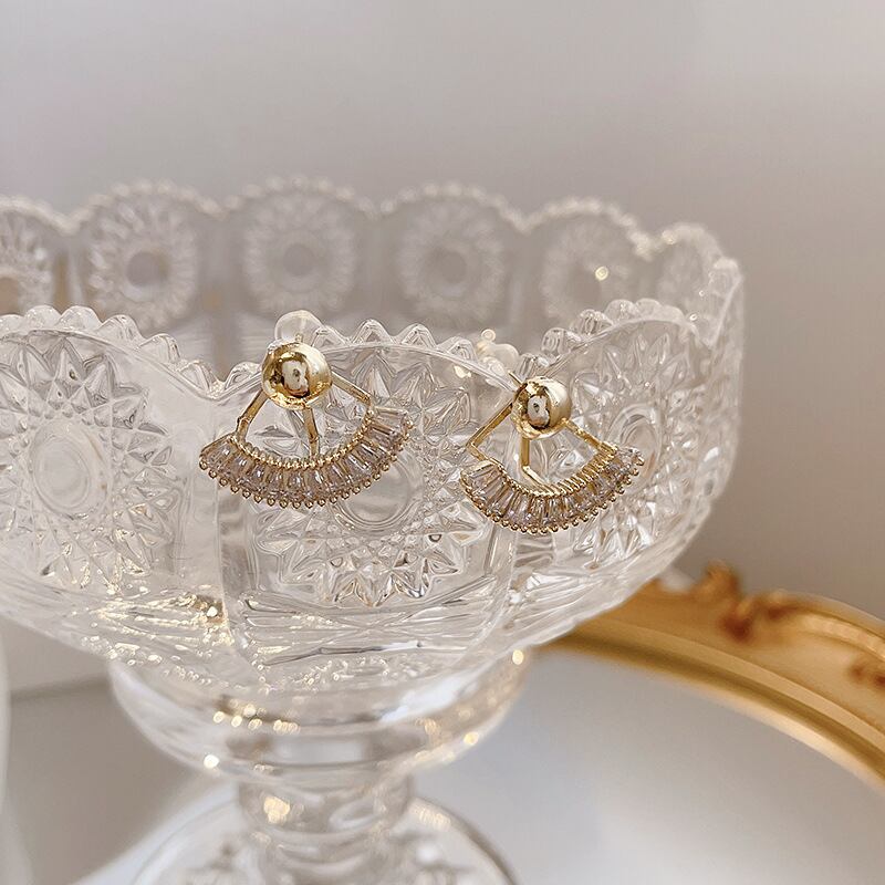 ジルコンの扇形のイヤリング、金色の豆のイヤリング、女性の丸い顔、薄い、1つまたは2つのイヤリングを着用した後の損失を報告するEHE