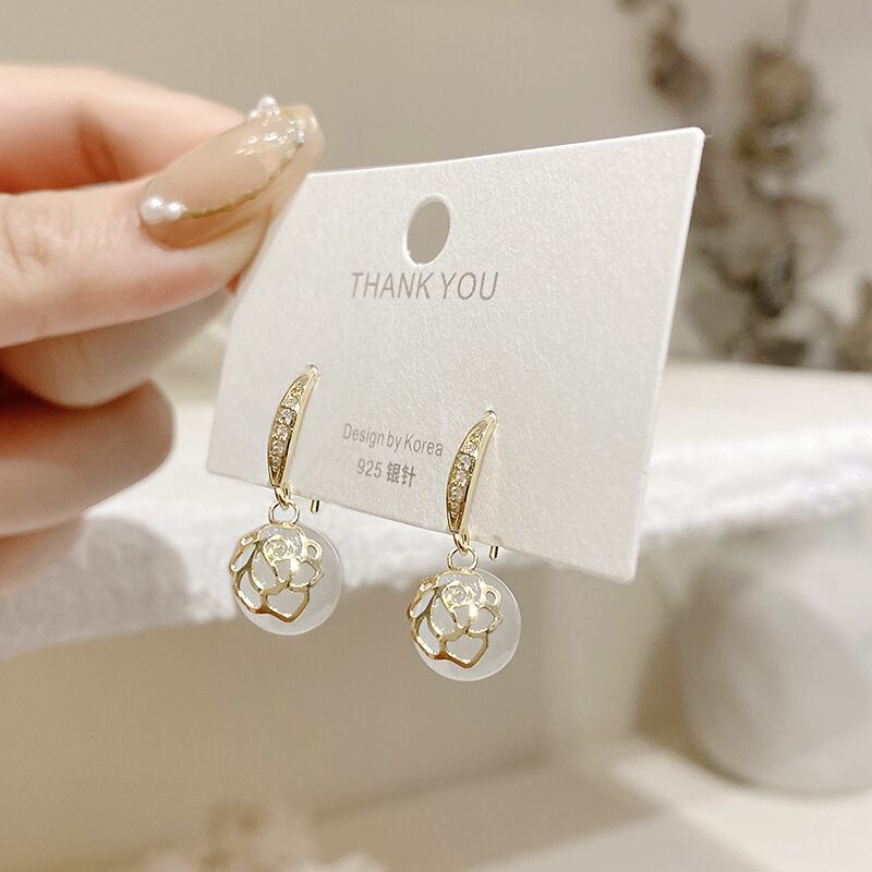 ライトラグジュアリーフラワーオパールマイクロインレイピアス女性2022新しいハイエンドイヤージュエリーEHE