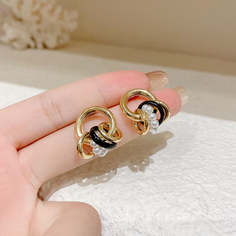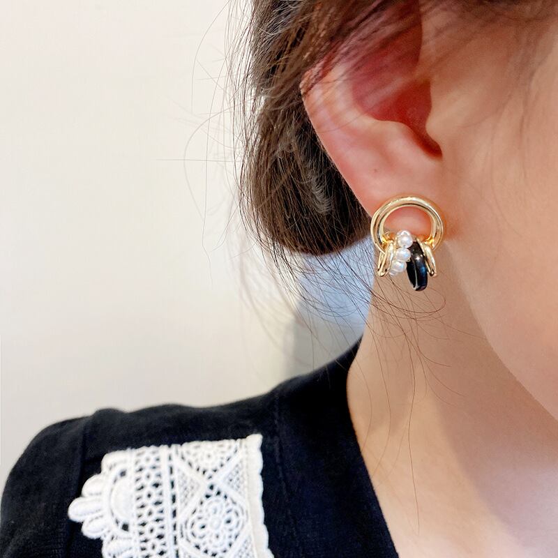 シルバーニードルクレバーメタルサークルスタッドピアスメスパールピアスコールドイヤージュエリーEHE