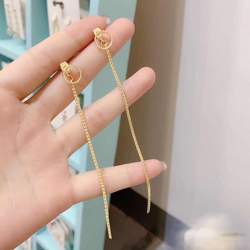 ロングイヤリングフロスティタッセルイヤリングシルバーニードルサークルイヤリングEHEEHE