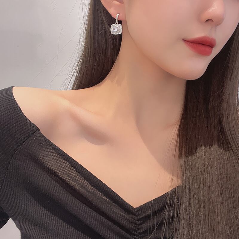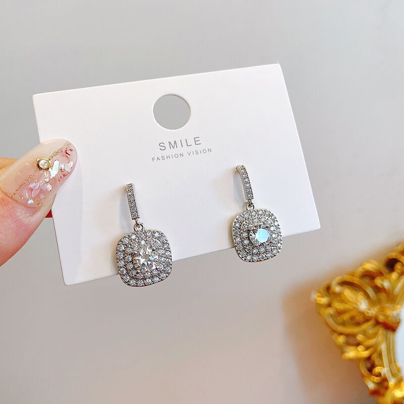 2022新しいハイエンドイヤリング女性のシルバーニードルライトラグジュアリーイヤリングスクエアイヤリングEHEEHE