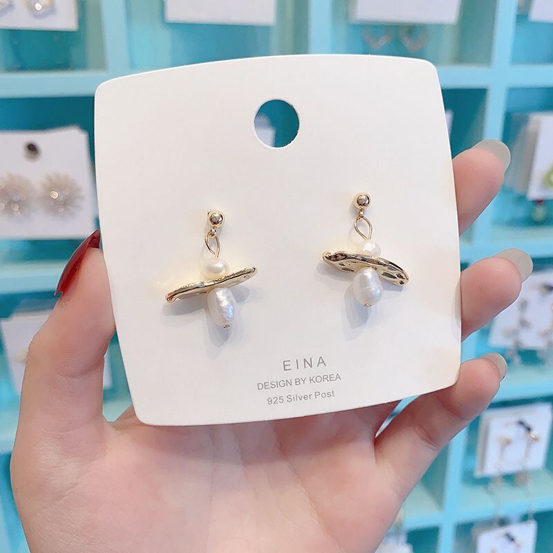 Sシルバーニードルナチュラル淡水パールピアス、レギュラー幾何学ピアス、ガーリー優しいハイエンドピアスEHEEHE