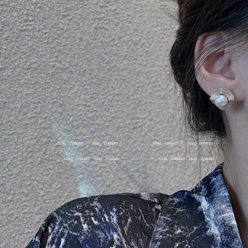 幾何学的な真珠のイヤリング、高級な雰囲気のイヤリング、Sシルバーの針の誇張されたイヤリング、女性のEHE