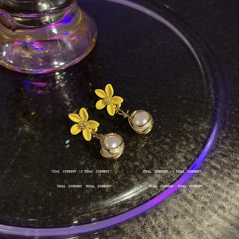SシルバーニードルフラワーピアスハイエンドパールピアスメスピアスEHE