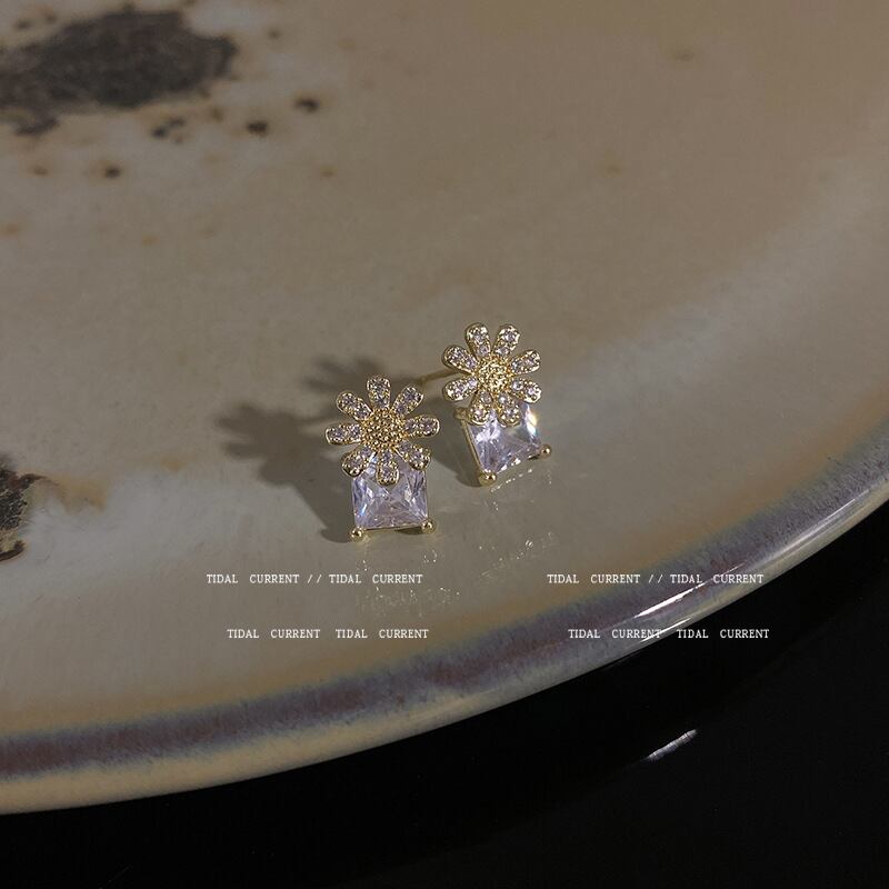sシルバーニードルクリスタルフラワーイヤリング女性イヤリング2022新しいイヤリングEHE