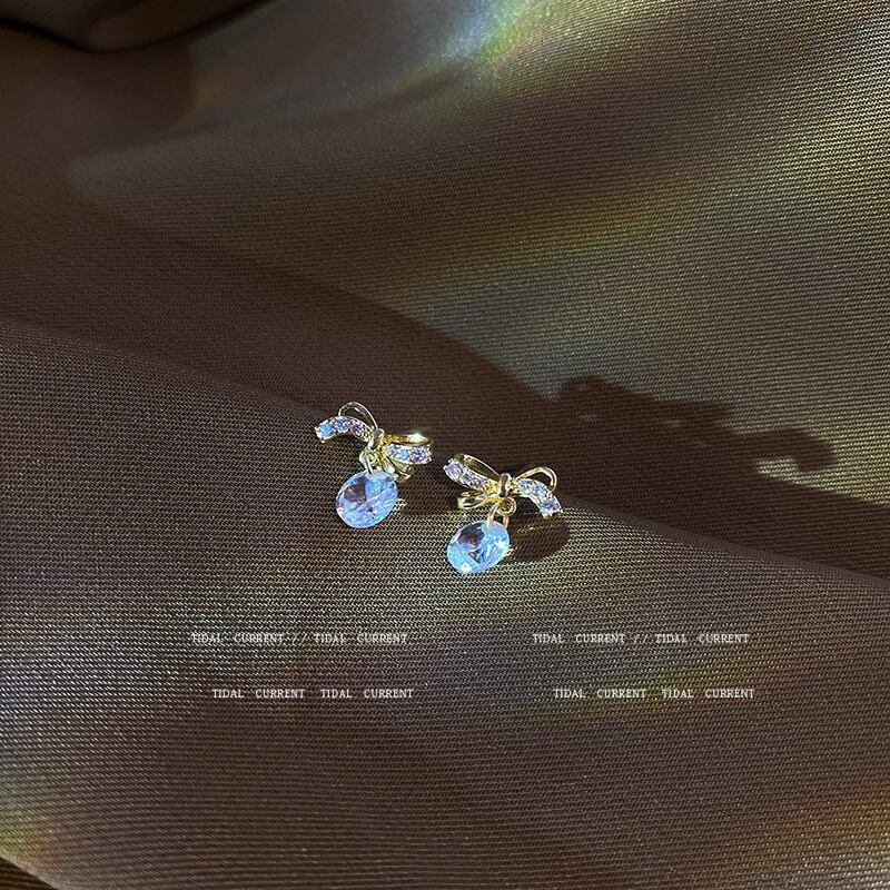 Sシルバーニードルジルコンボウスタッドピアス、ライトラグジュアリーハイエンドイヤリング、スマートイヤージュエリーメスEHE