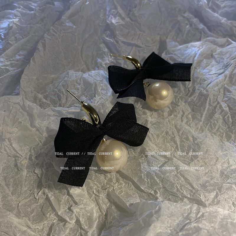SシルバーニードルリボンボウパールピアスサマーライトラグジュアリーハイエンドピアスEHE