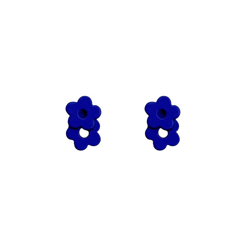 ダブルレイヤーオーバーラップフラワーイヤリングメスSシルバーニードルスタッドピアスメスEHE