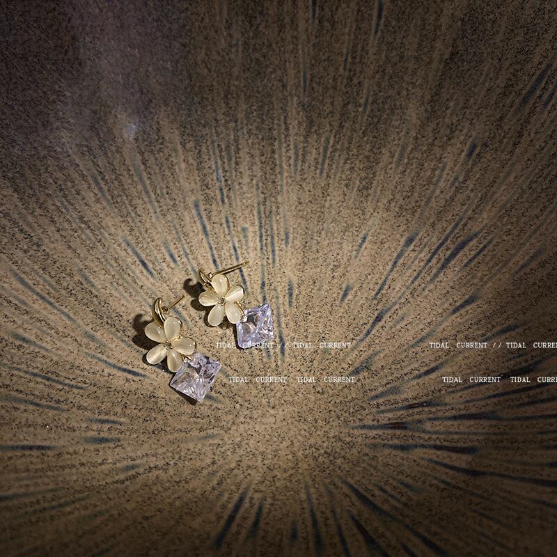 Sシルバーニードル幾何学的な正方形の花のイヤリング女性のハイエンドセンスイヤリングコールドイヤリングEHEEHE