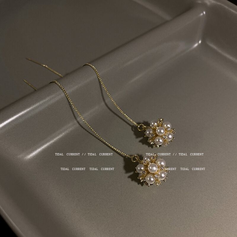 高品質のパールボールイヤリング、女性のロングタッセルイヤーライン、さまざまな身に着けているイヤーアクセサリーEHE