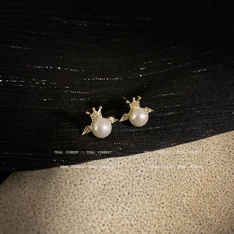 シルバーニードル高品質スーパーフェアリーパールピアスメスクラウンウィングピアスピアスEHE