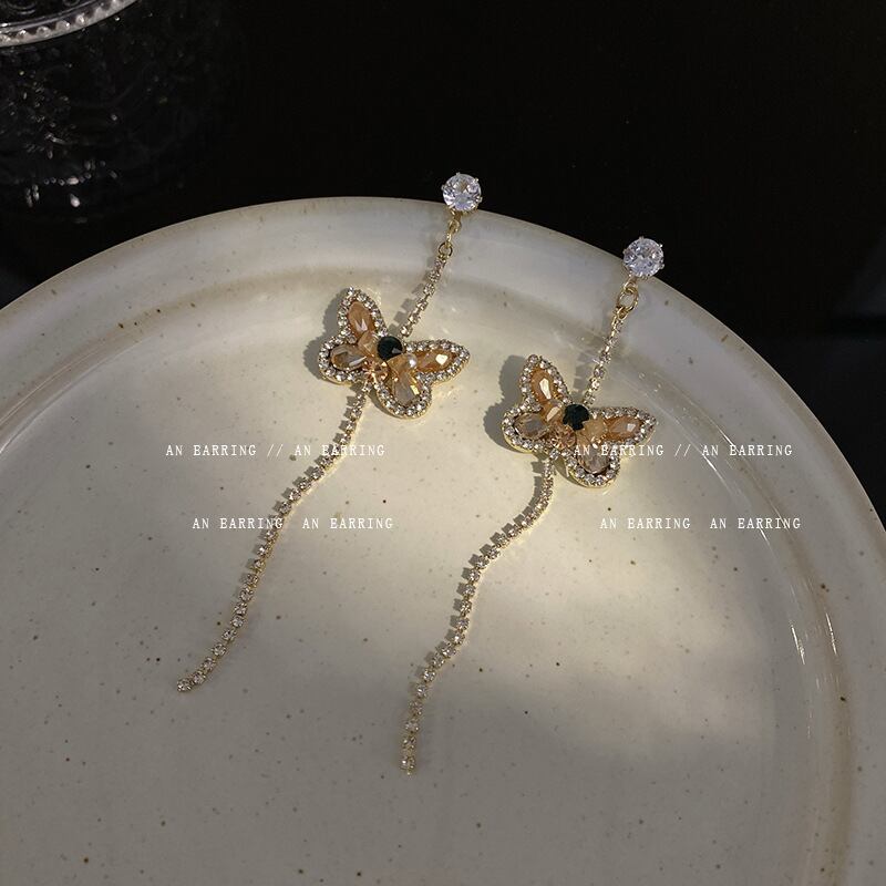 SシルバーニードルロングタッセルボウイヤリングメスイヤリングコールドイヤリングEHE